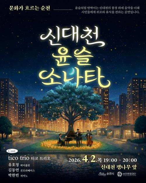 [¿¡ÄÚȯ°æÀϺ¸ ¼øÃµ=±è¿ëÈÆ ±âÀÚ] Àç´Ü¹ýÀÎ ¼øÃµ¹®È­Àç´ÜÀº ¿À´Â 4¿ù 2ÀÏ ¸ñ¿äÀÏ, Àú³á 7½ÃºÎÅÍ ÇÑ ½Ã°£ µ¿¾È ½Å´ëõ ÆØ³ª¹« ¾Õ¿¡¼­ °íǰ°Ý ¾ß°£ Ŭ·¡½Ä °ø¿¬ <½Å´ëõ, À±½½¼Ò³ªÅ¸>¸¦ °³ÃÖÇÑ´Ù°í ¹àÇû´Ù. ¼­¿ï¿¡ û°èõÀÌ ÀÖ´Ù¸é, ¼øÃµÀº µµ½É ¼Ó ÇѰ¡¿îµ¥ ½Å´ëõÀÌ¡¦