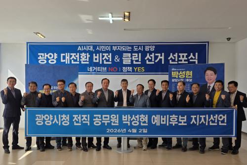 [¿¡ÄÚȯ°æÀϺ¸ Àü³²±¤¾ç=¹Ú±¤¿Á±âÀÚ] ±¤¾ç½Ã ÀüÁ÷ °ø¹«¿ø 40¿© ¸íÀº 2ÀÏ ¿ÀÀü 10½Ã ¹Ú¼ºÇö ¿¹ºñÈĺ¸ ¼±°Å»ç¹«¼Ò¿¡¼­ ¹Ú Èĺ¸¿¡ ´ëÇÑ ÁöÁö¸¦ ¼±¾ðÇϸç, Çö ½ÃÁ¤¿¡ ´ëÇÑ °­µµ ³ôÀº ºñÆÇ°ú ÇÔ²² ±¤¾çÀÇ ±Ùº»ÀûÀÎ º¯È­¸¦ Ã˱¸Çß´Ù. À̵éÀº ¡°Áö³­ 4³â°£ ±¤¾ç½Ã´Â °ÑÀ¸·Î¡¦