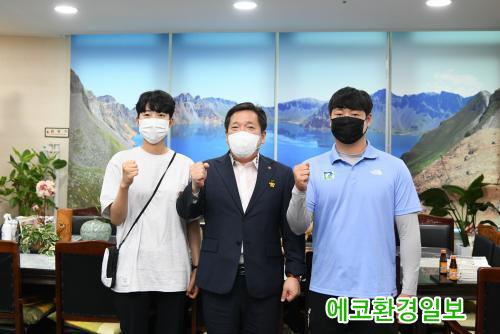 (¿¡ÄÚȯ°æÀϺ¸=À̺´½Ä±âÀÚ) µµÄì¿Ã¸²ÇÈ ¾ç±Ã 3°ü¿Õ¿¡ ¿À¸¥ ½ºÆ÷Ã÷ ½ºÅ¸ ¾È»ê ¼±¼ö°¡ 19ÀÏ ¿ÀÈÄ 3½Ã 30ºÐ²² ±¤ÁÖ ³²±¸Ã»À» ±ô¦ ¹æ¹®, ±èº´³» ±¸Ã»Àå¿¡°Ô °¨»çÀÇ ¸¶À½À» ÀüÇß´Ù.
