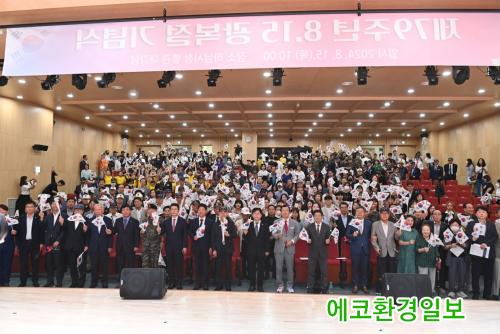 [¿¡ÄÚȯ°æÀϺ¸=À̽ŵ¿±âÀÚ]Çϳ²½Ã(½ÃÀå ÀÌÇöÀç)´Â 15ÀÏ ±¤º¹È¸¿ø, º¸ÈÆ´Üü, û¼Ò³â¡¤¾î¸°ÀÌ µî ½Ã¹Î 400¿© ¸íÀÌ Âü¼®ÇÑ °¡¿îµ¥ Á¦79Áֳ⠱¤º¹Àý ±â³ä½ÄÀ» °³ÃÖÇß´Ù.