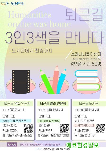 [¿¡ÄÚȯ°æÀϺ¸ ½ÃÈï½Ã=À̽ŵ¿±âÀÚ] ½ÃÈï½Ã ¼Ò·¡ºûµµ¼°üÀº ¼Ò·¡³Ê³ªµéÀ̼¾ÅÍ¿Í ÇÔ²²ÇÏ´Â ¡®Åð±Ù±æ 3ÀÎ 3»ö¡¯ Àι®ÇÐ °¿¬À» 11¿ùºÎÅÍ ÃÑ 3ȸ¿¡ °ÉÃÄ ¼Ò·¡³Ê³ªµéÀ̼¾ÅÍ¿¡¼ °³ÃÖÇÑ´Ù.